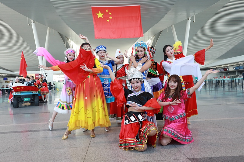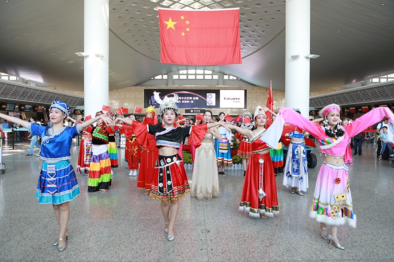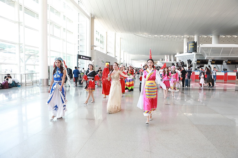 為迎接國慶佳節的到來,紀念祖國成立69周年,10月1日上午10點,航站區管理中心在3座航站樓開展以“民族團結-花車歌舞游行展”為主題的文化活動,由中心員工、駐樓商戶員工及演藝人員身著56個民族特色的傳統服飾,伴隨著裝飾了國旗圖案的花車在航站樓出發大廳內進行動態的游行展示,同時分別在3座航站樓公共區域表演了旅客們喜聞樂見的愛國歌舞,體現了祖國繁榮昌盛、56個民族團結富強的偉大盛舉。活動進行的同時,工作人員向過往的旅客分發了小國旗,并送上節日祝福,吸引旅客駐足觀賞,紛紛拍照留影。此次活動是航站區中心第一次在樓內舉辦“動態”的文化活動,通過中秋、國慶兩場文藝演出的成功舉辦,進一步豐富了航站樓的文化元素,提升了航站樓的文化品質。