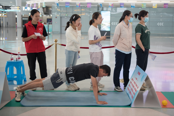 9月13日,航站區中心聯合浙江長龍航空在T4出發大廳舉辦“金秋迎亞運 趣味大闖關”文化互動活動。